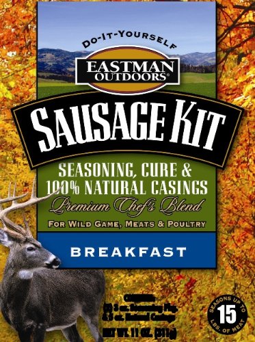 Eastman Outdoors Sausage seasonings are unique blends that gives your meal a gourmet chef taste. Package contains enough cure, seasonings, and casings to make sausages out of 15-pound of wild game, beef, pork, or poultry meats. Comes with detailed, easy to follow instructions. Breakfast Sausage flavor gives your sausage links that mild spicy / pepper flavor with a sage, salty after taste that goes great with any style of breakfast.