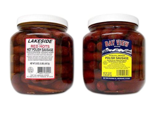 - Enjoy 1 jar of Bay View Pickled Polish Sausage and 1 jar Lakeside Red Hot Pickled Polish Sausages